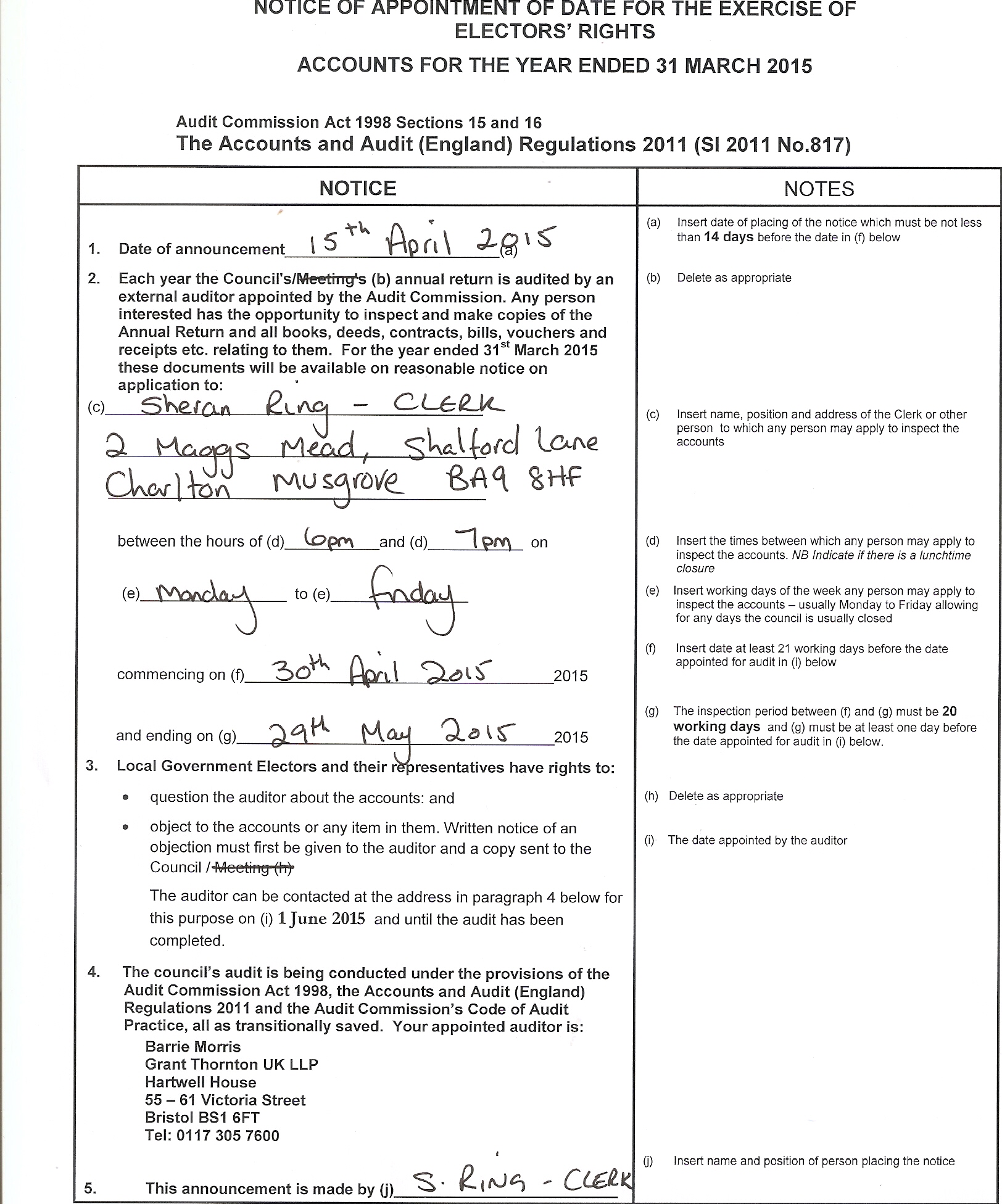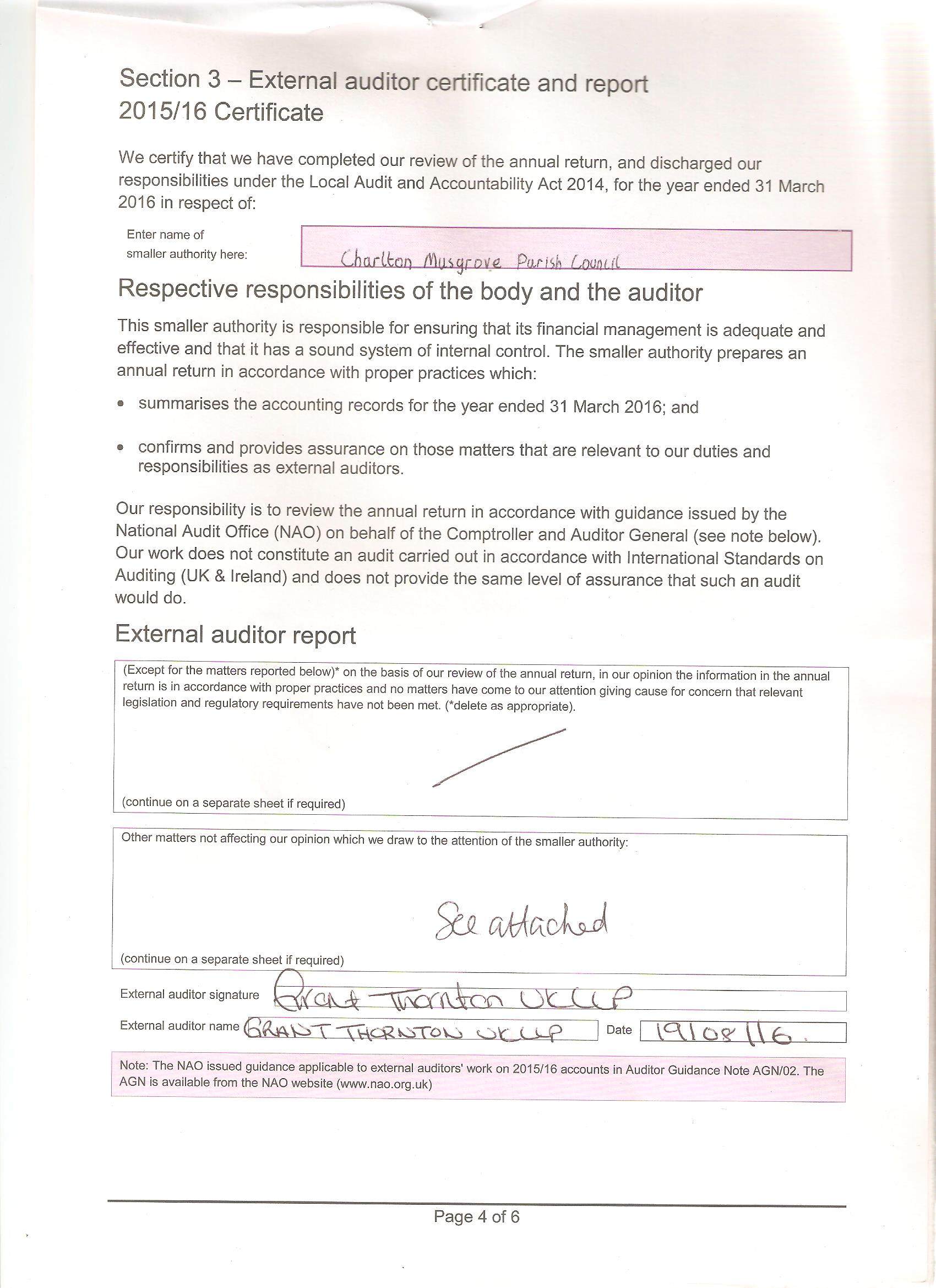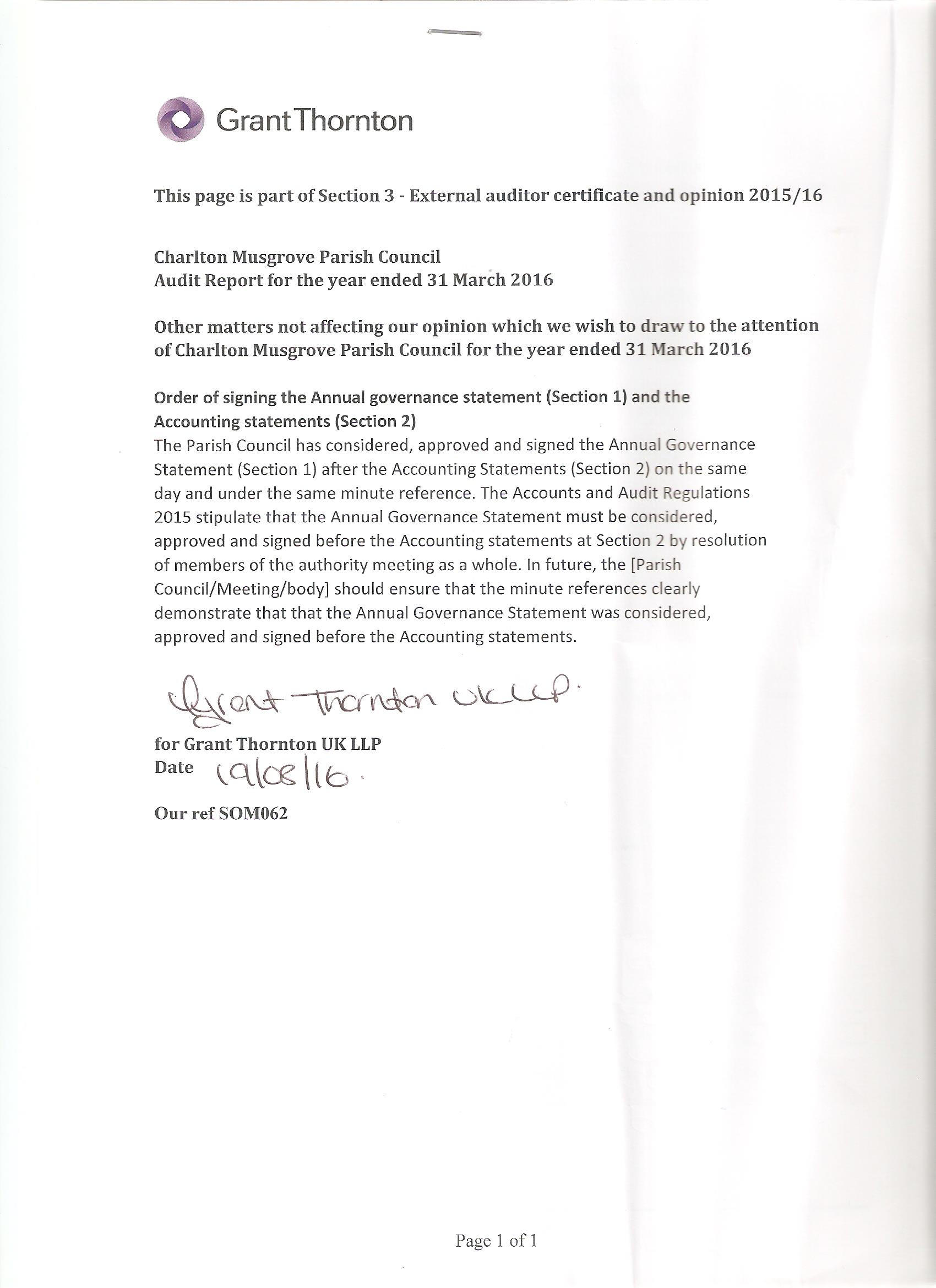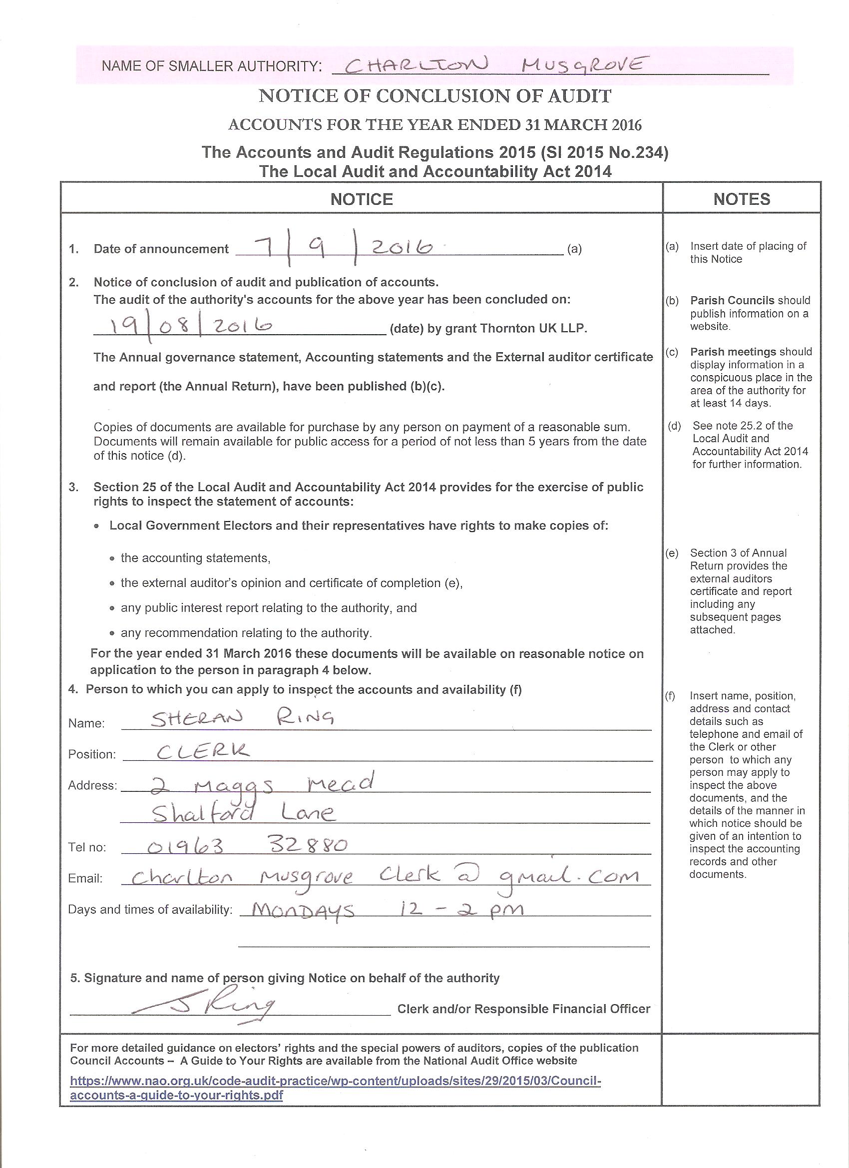Notice of Conclusion of Audit - year ended 31 March 2016